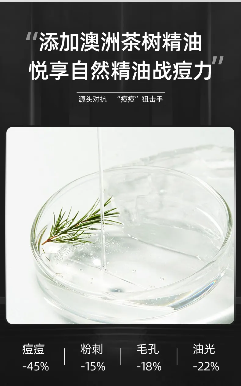 针对油皮,混合皮肌肤人群,广州大澳化妆品有限公司推出了澳洲茶树精油祛痘男士套盒,澳洲茶树精油添加的纯度,质量都有保证。澳洲茶树精油已经被公认为是痘痘“狙击手”第一人,在控油祛痘方面澳洲茶树精油的表现远超于同价位的祛痘原料,而且最重要的是,澳洲茶树精油萃取自纯天然的澳洲茶树中,不含任何任何人工合成的成分,小分子精油还可以渗入人体血液起到舒经活络的作用。真正的纯天然无添加祛痘!!