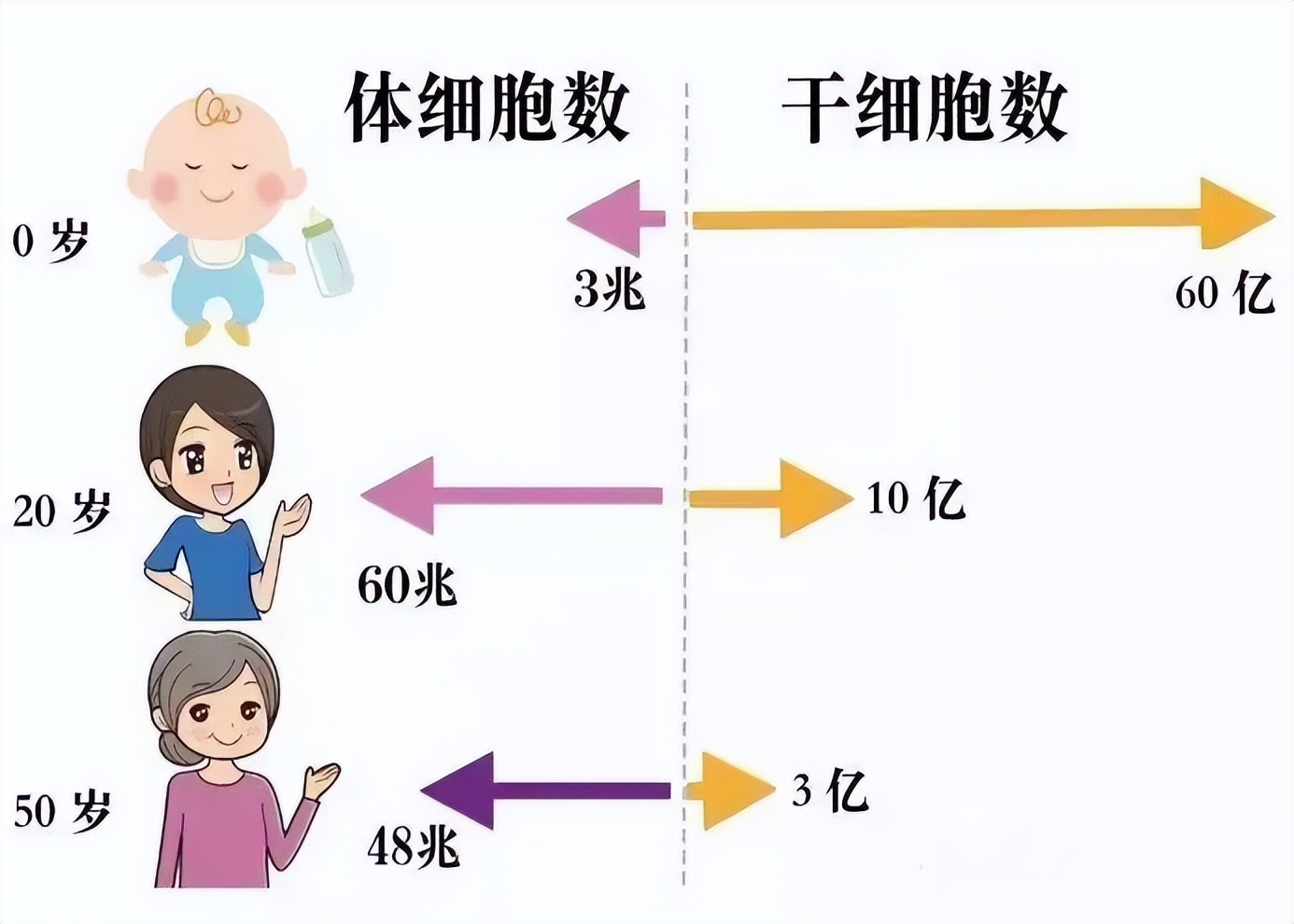 干细胞有强大的再生修复功能,但随着年龄增长,我们体内干细胞的数量及活力就会不断减弱。