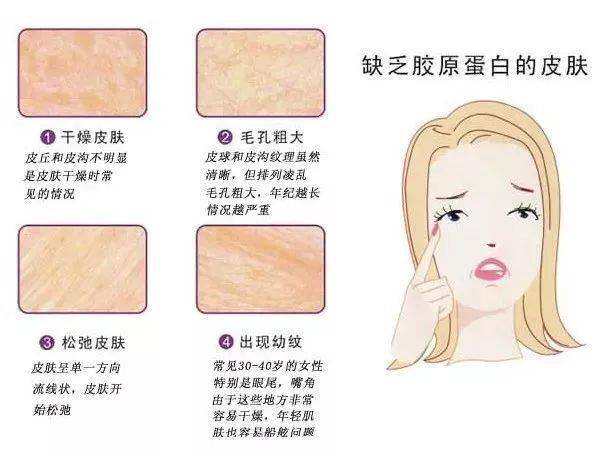 人的肌肤也因为弹性变差而开始出现皱纹、斑点等老化现象40岁时,皮肤中的胶原蛋白含量不到18岁时的一半。同时女性由于月经、生育等生理因素的影响,胶原蛋白流失量是男人的2.5倍。