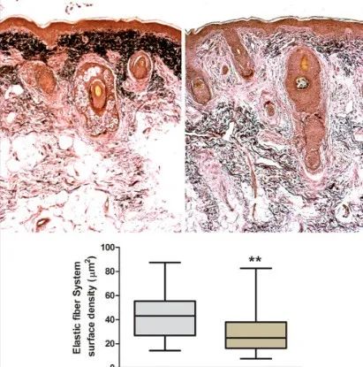 上图显示弹力纤维质从术前的23.69平方微米(中值表面密度)显著增加到41.82平方微米(中值表面密度)