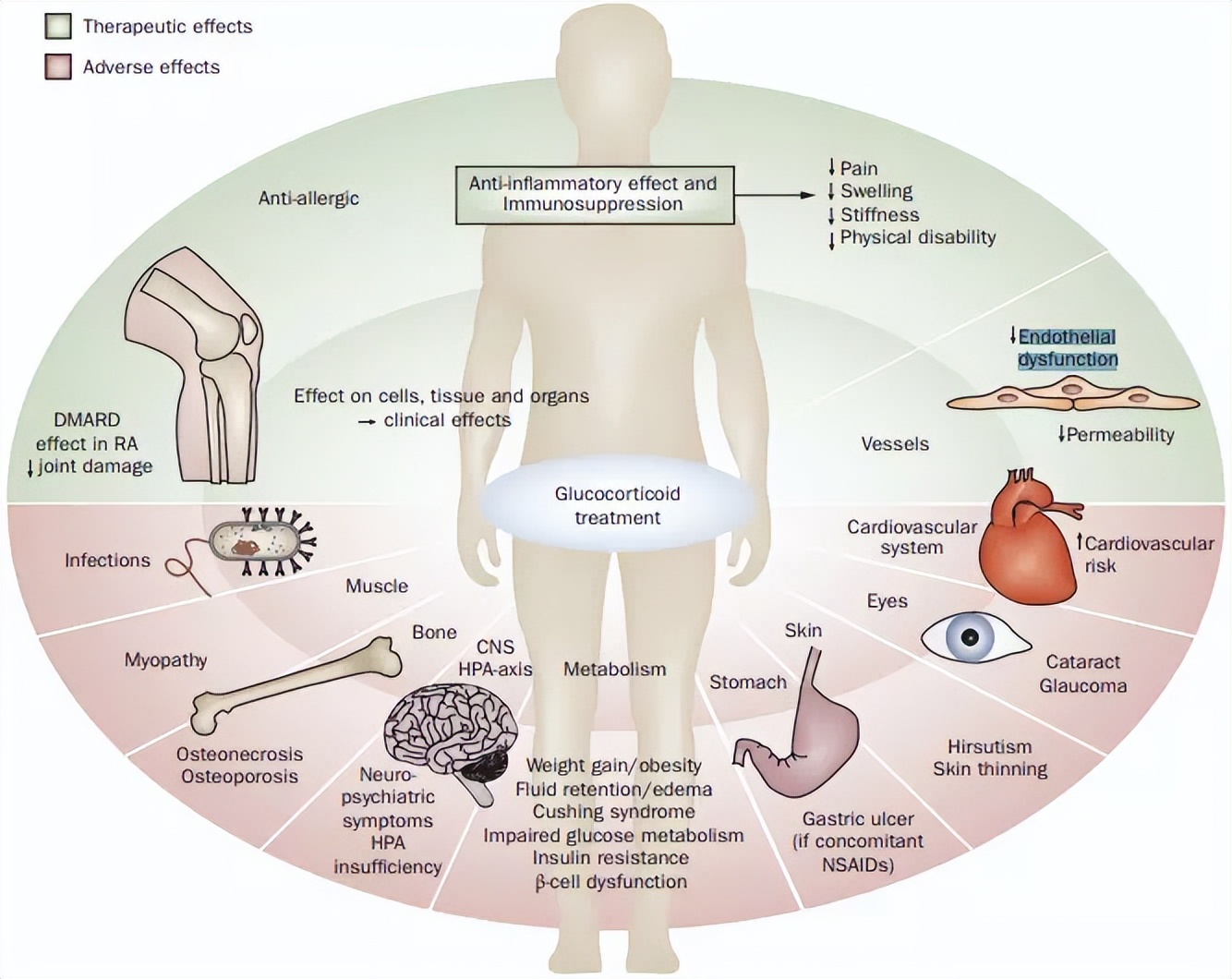 △ 红色区域为糖皮质激素治疗可能带来的不良影响