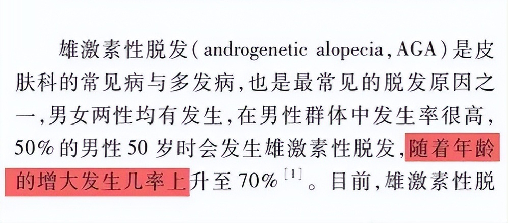 而且,在40-70岁的男性中,雄性激素脱发的患病率和严重程度,是会随着年龄的增加而增加的。