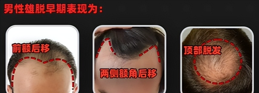 男性患者脱发的部位主要是前额两侧发际线后移,或者顶部进行性脱发。